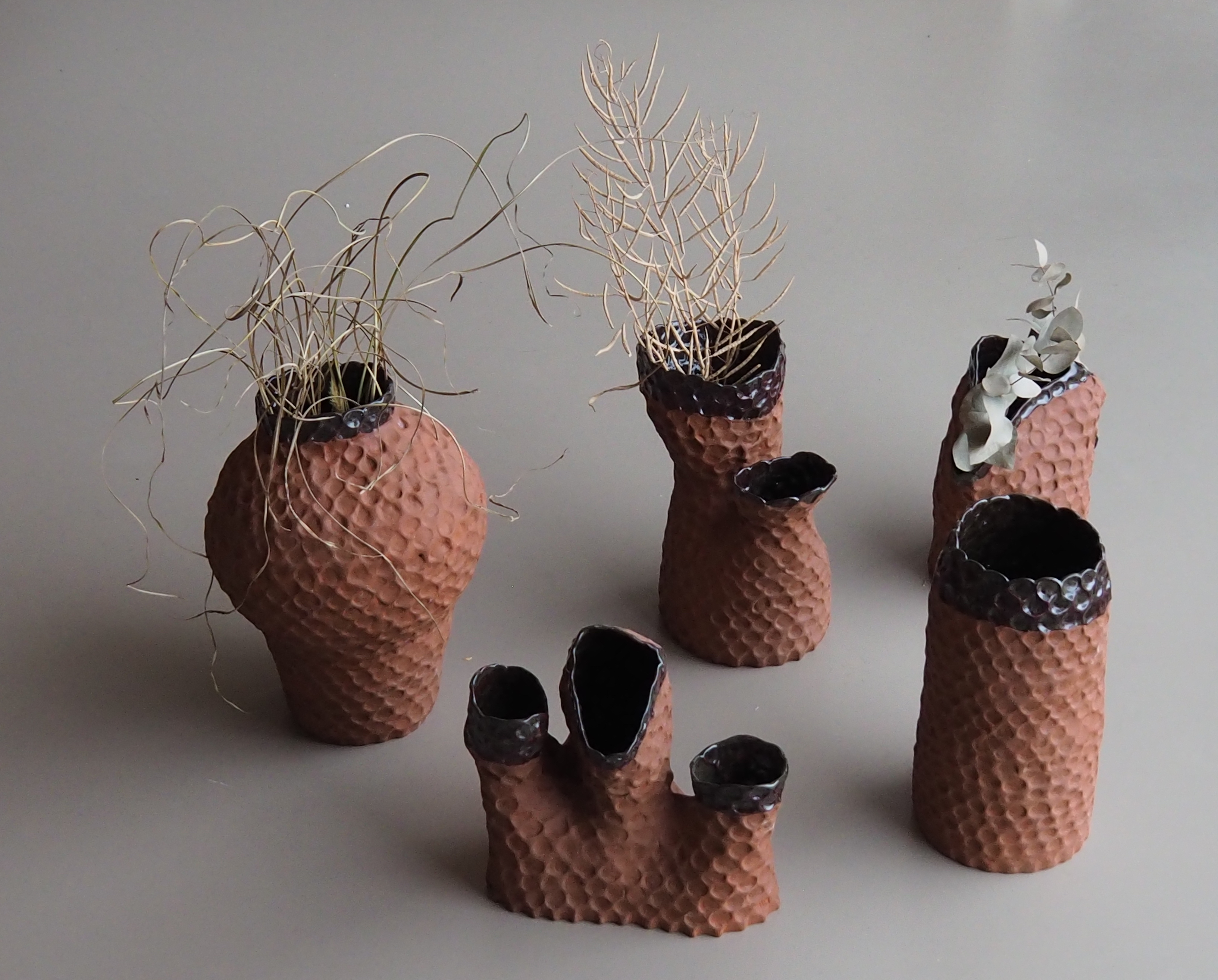 Le geste, l’empreinte sur la terre ainsi que la transformation au feu est une fascination et un terrain de jeu pour moi. J’aime utiliser la liberté qu’offre la céramique qui permet de passer d’objets du quotidien à des pièces plus libres ou expérimentales.